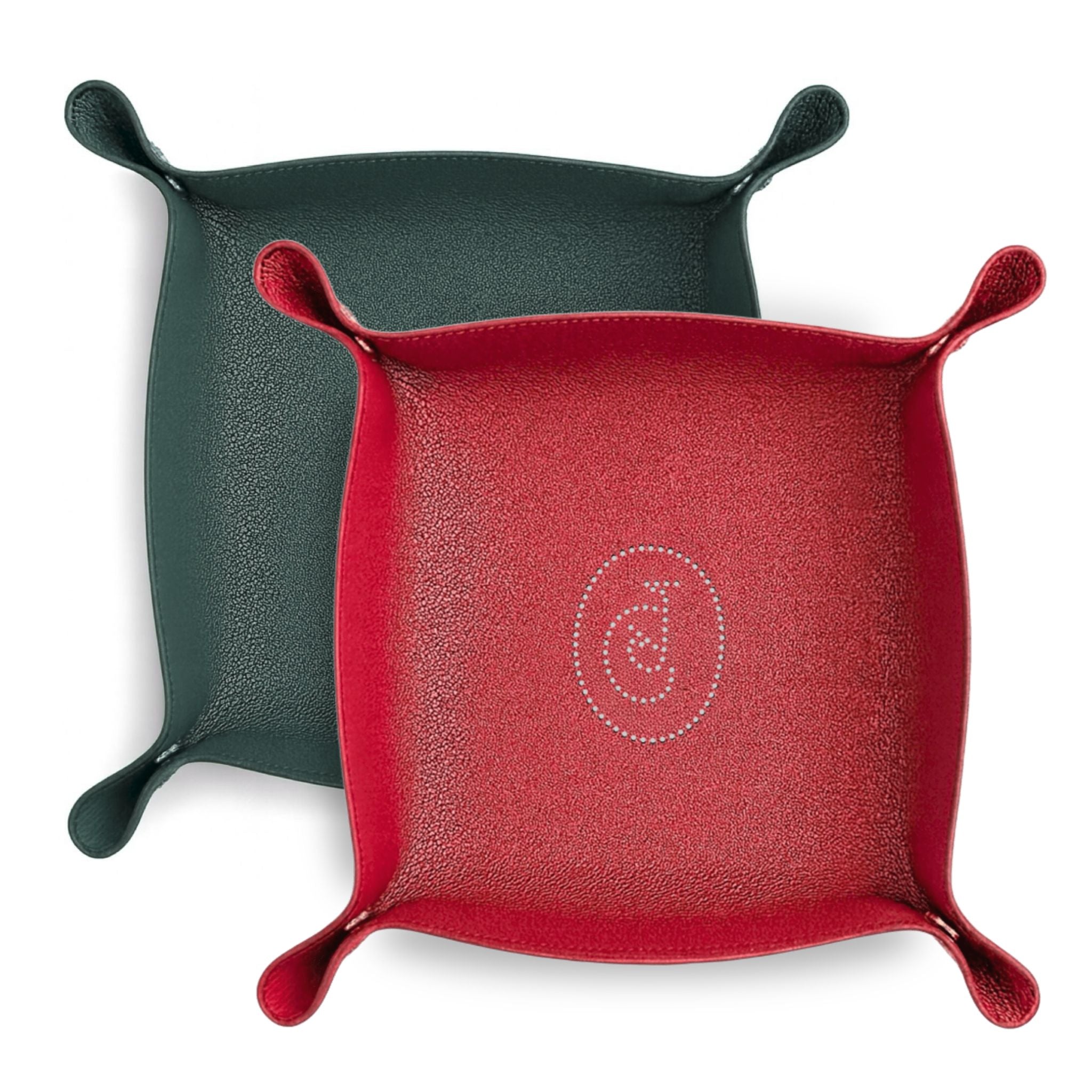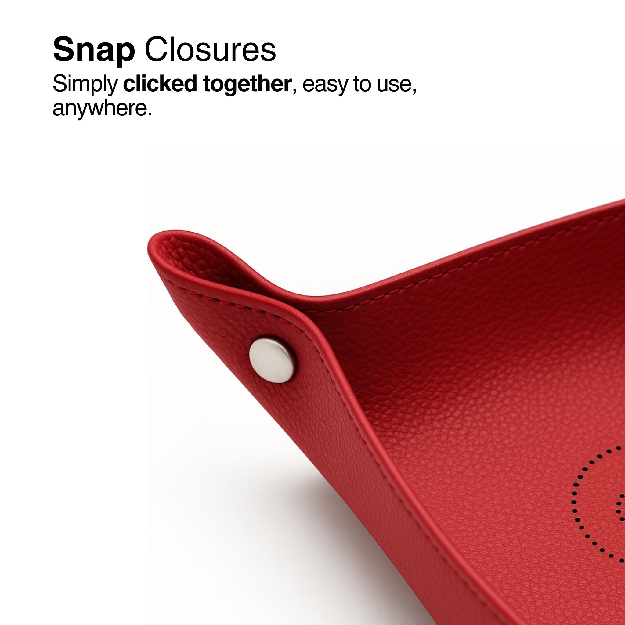 Precieze perforaties in het midden van de Tray onthullen het CJ-embleem, omlijst door zadelstiksels en elegante drukknopen.
